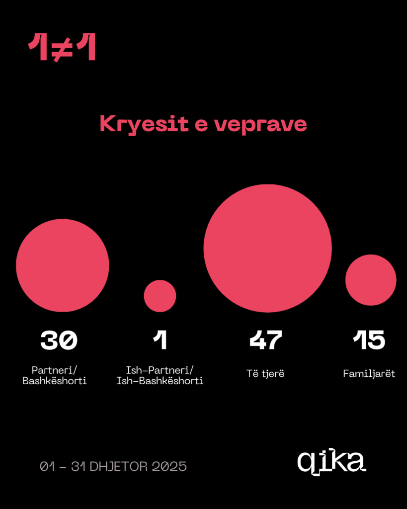 Këto infografika të realizuara nga QIKA janë pjesë e platformës 1 ≠ 1, i cili ka për qëllim publikimin e të dhënave të institucioneve të drejtësisë mbi dhunën në familje me fokus dhunën në bazë gjinore.