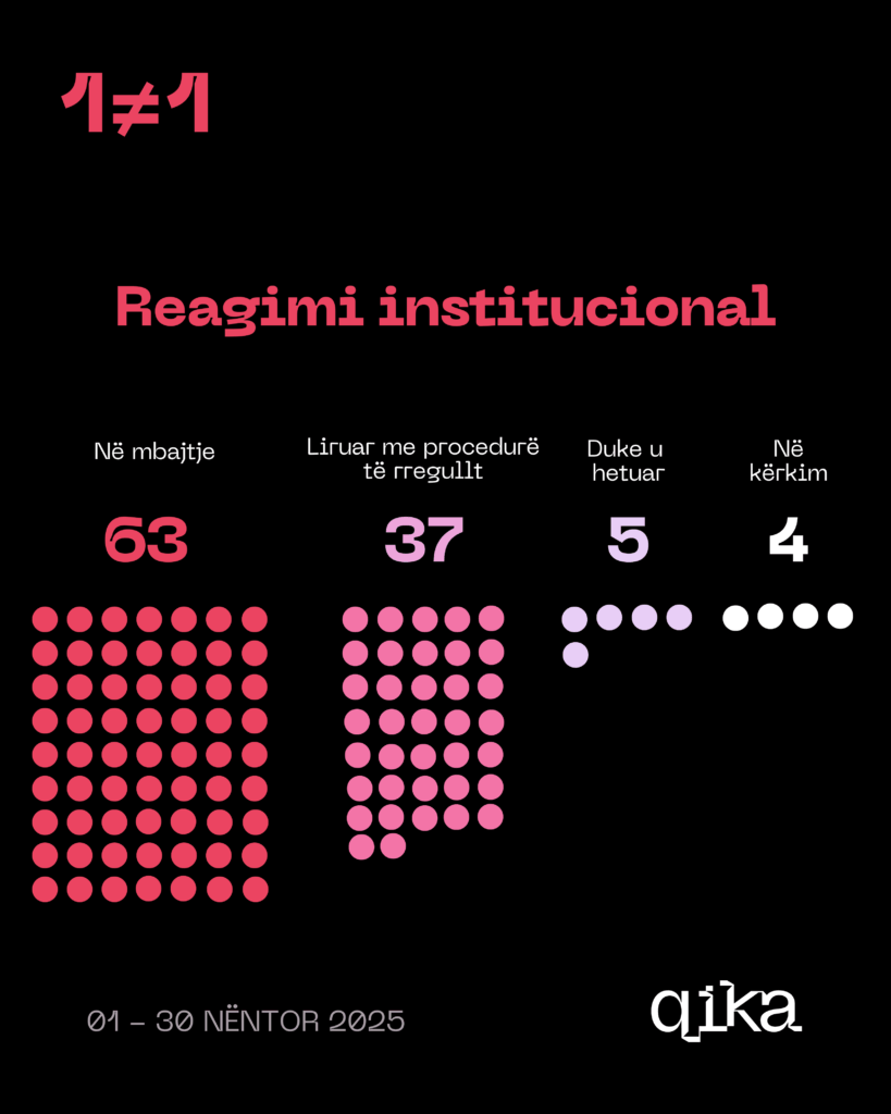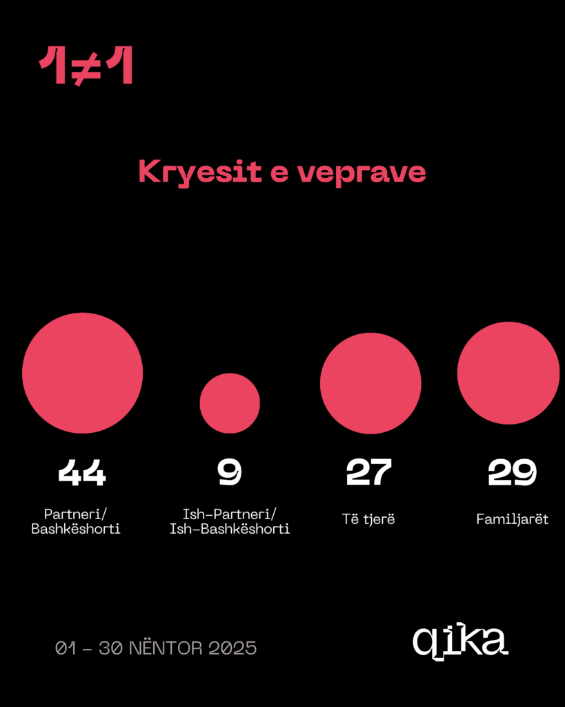 Këto infografika të realizuara nga QIKA janë pjesë e platformës 1 ≠ 1, i cili ka për qëllim publikimin e të dhënave të institucioneve të drejtësisë mbi dhunën në familje me fokus dhunën në bazë gjinore.