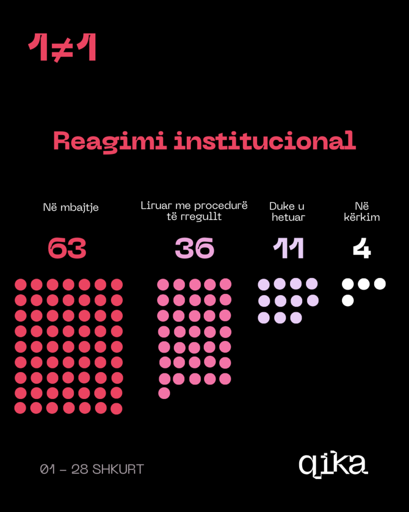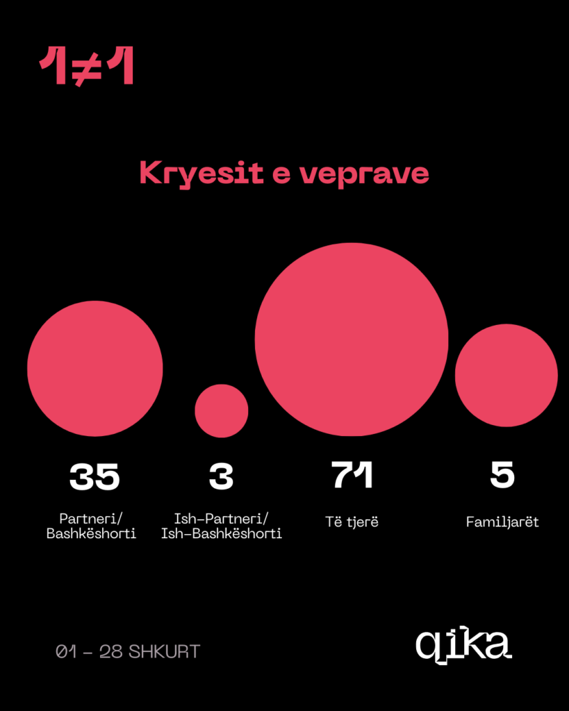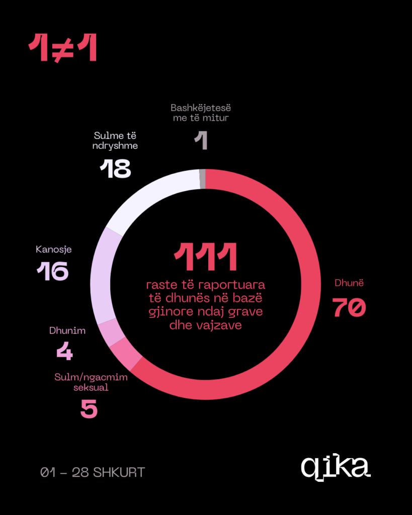 Këto infografika të realizuara nga QIKA janë pjesë e platformës 1 ≠ 1, i cili ka për qëllim publikimin e të dhënave të institucioneve të drejtësisë mbi dhunën në familje me fokus dhunën në bazë gjinore.